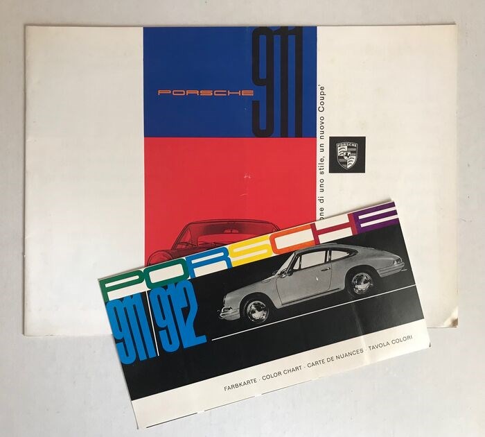 Porsche 911/912 Kleurenkaart in het Duits, Engels, Frans, Italiaans, artikel W 25 vanaf 5.65. Tweekleurenpalet licht beschadigd.