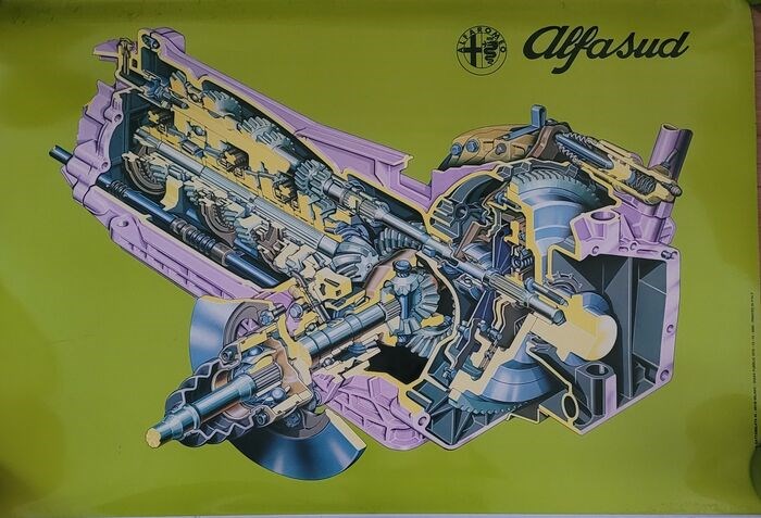 Explosietekening van een Alfa Romeo-versnellingsbak