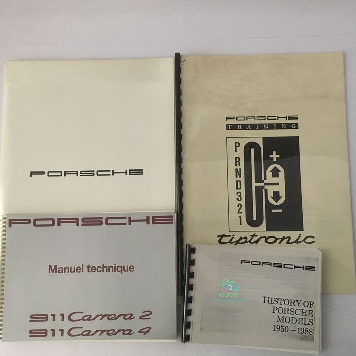 Porsche, Porsche 911 Carrera 2 en 911 Carrera 4 technische handleiding, Porsche modelgeschiedeniscollectie van 1950 tot 1988, Porsche Training Tiptronic. Officiële technische documentatie en gereserveerd voor de pers ter gelegenheid van de presentatie van de Porsche 911-964 Carrera 2 in 1990. De objecten komen in feite uit de privécollectie van een bekende journalist, radio- en boekauteur en voor velen jaar manager van Éditions Alpha, een bedrijf dat later Éditions Atlas werd.
