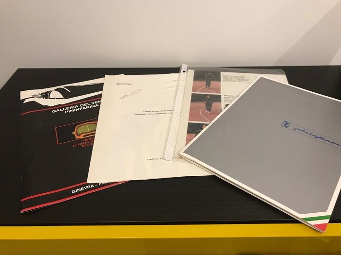 Is een informatie brochure van Pininfarina van Ferrari en peugeot. Met originele persfoto's en een extra bijlage. Ook een brochure van de galleria sel vento Pininfarina. Er zit ook een brief met naamkaartje bij van ferdi Valentini 'honorary royal désigner for industry'. Er zitten ook nog 2 tijdschrift knipsels bij van luca di montezemolo. Dan een zeer zeldzame voorbereiding voor een publicatie in een tijdschrift van een auto journalist. 20 pagina's met verbeteringen.