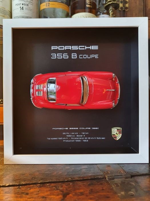 Model Porsche 356 B Coupe (1961) in Signal Rot op schaal 1:24 (modelauto is nieuw) in 3D frame