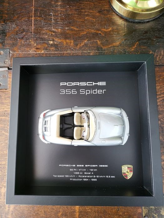 Schitterend model Porsche 356 Spider (1955) in de elegante kleur Silbermetal op schaal 1:24 (modelauto is nieuw) in 3D frame