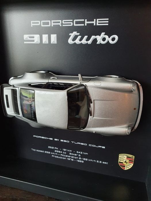 Het legendarische model Porsche 911 (930) TURBOin de prachtige kleur zilver op schaal 1:24 (modelauto is nieuw) in 3D frame