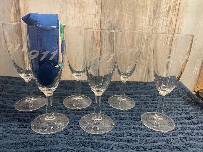 6 stuks Porsche champagneglazen, zeer mooie staat
