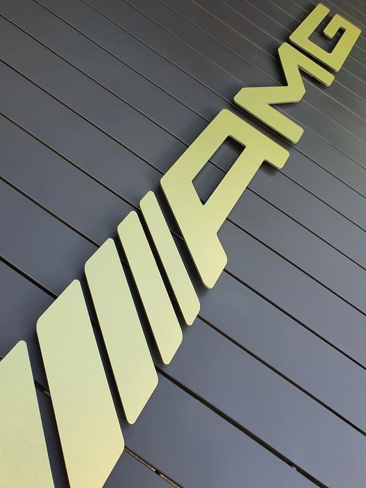AMG Mercedes-logo gebruikt door professionals als decoratief element voor hun showroom, garage, werkplaats, kantoren, buiten of binnen.