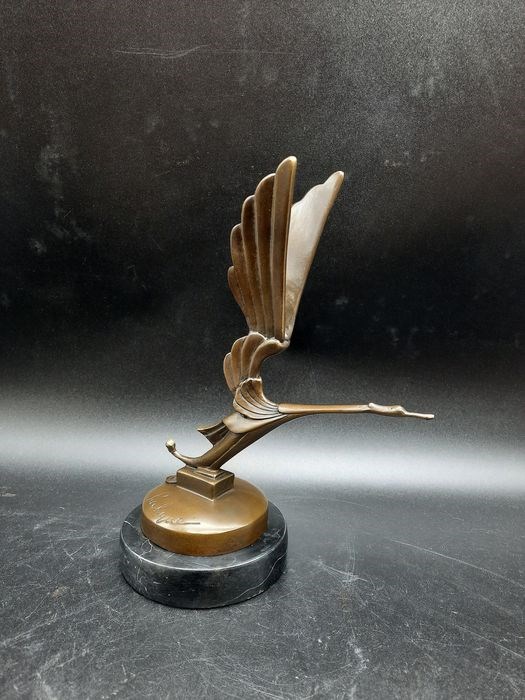 Deze prachtige art deco automascotte/logo Stork is gemaakt van massief brons met een gepolijste marmeren voet.
