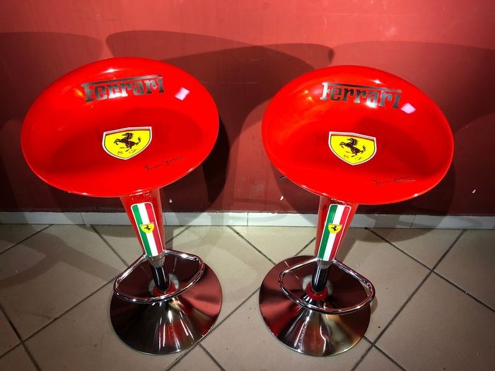 Laatste, onmisbare kans om dit fantastische paar krukken, limited edition "9/9", met SCUDERIA FERRARI-motieven te winnen.