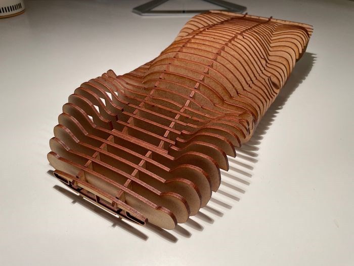 Sculptuur van het beroemde silhouet van de Ferrari 330 P4.