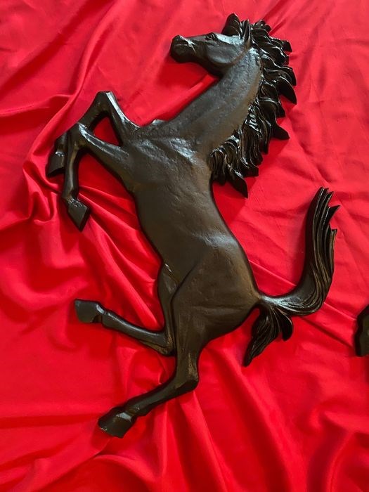 Zwart gelakt aluminium Ferrari XXL steigerend paard. Geweldig en groot steigerend paard: meer dan 90 cm x breedte ca. 60cm. Gekocht op een lokale markt in de buurt van Maranello.