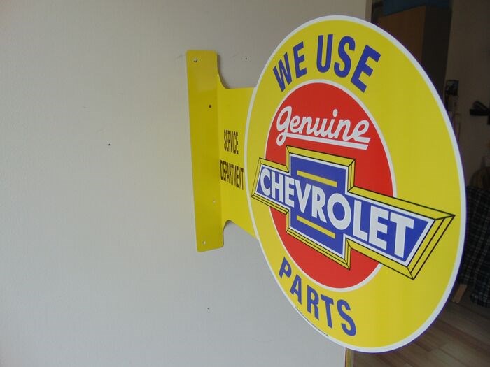 This is auction for a CHEVROLET double sided metal sign.