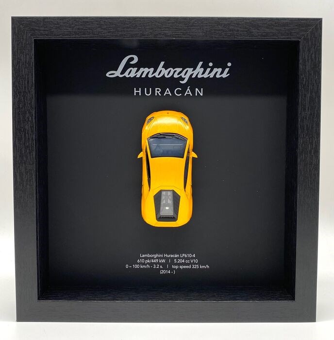3D picture frame containing a Lamborghini Huracán LP610-4 - yellow (Giallo Midas pearl)