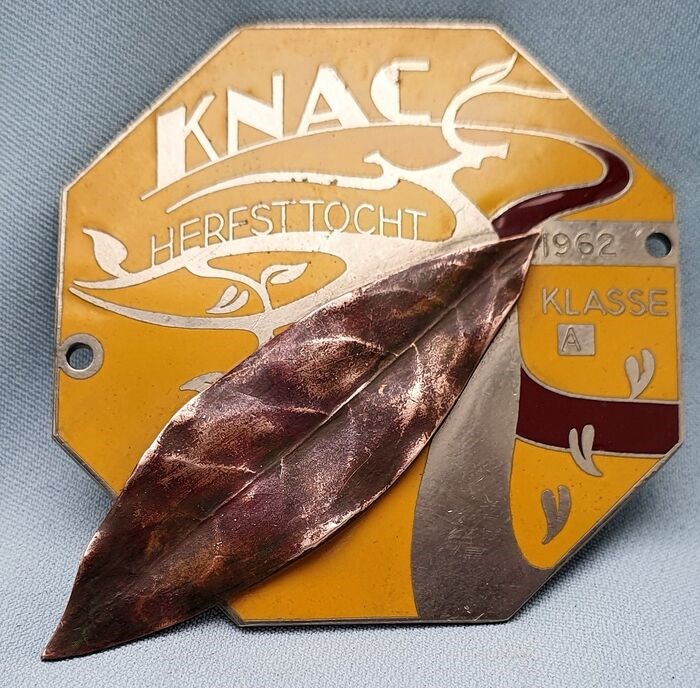 Geëmailleerde Grille Badge van de "Koninklijke Nederlandsche Automobiel Club - Herfsttocht" uit 1962.