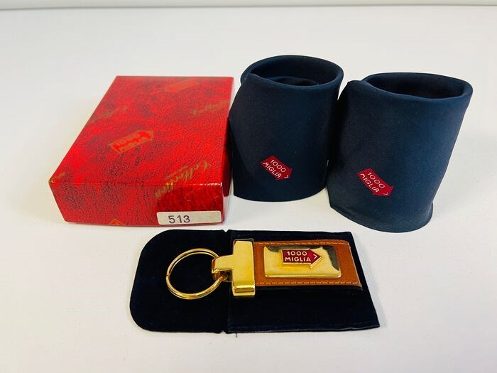 Hier worden prachtige automobilia-items voor de 1000 Miglia-race verkocht