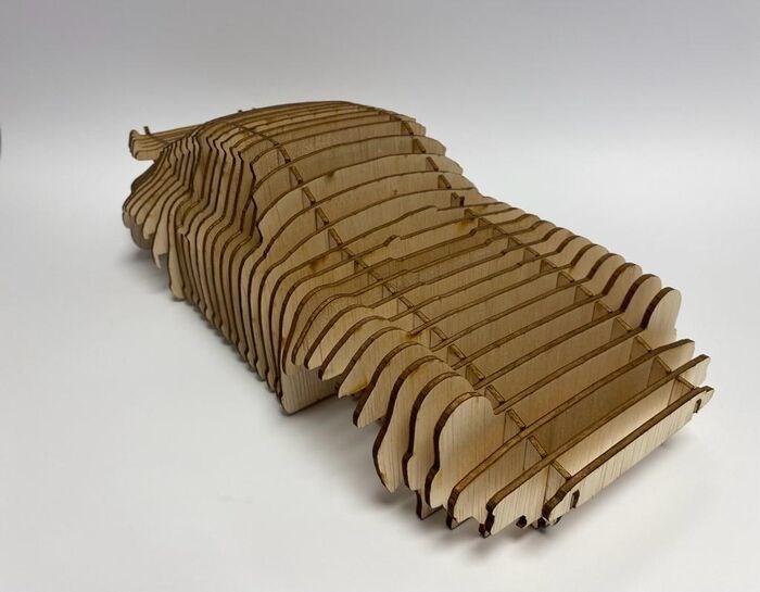 Een Porsche 930 (1975-1989) sculptuur gemaakt van hout. Dit is een perfect kunstwerk voor een porsche liefhebber of eigenaar.