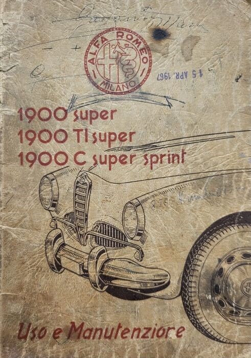 Alfa Romeo 1900 super, 1900 TI super, 1900 C super sprint gebruiks- en onderhoudsboekje, zeer mooi bewaard gebleven met tekenen van veroudering aangezien het een object is dat in 1954 is gedrukt!! Wordt compleet geleverd met delen 1, 2 en 3 met aansluitschema. Prachtig collectors item voor liefhebbers van het merk en model
