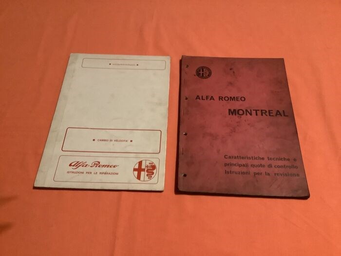 Alfaromeo Montreal werkplaatshandboeken 1) technische specificaties en volledige revisie-instructies 61 pagina's jaar 1971 editie van 1000 exemplaren 2) versnellingsbak reparatie handleiding pagina's 44 jaar 1972 editie van 2500 exemplaren publicaties voor geautoriseerde werkplaatsen en bedrijven essentieel voor restauratie en normaal onderhoud (de delen hebben markeringen enige tijd wegens gebruik maar functionaliteit is ok ) Veilige verzending per koerier