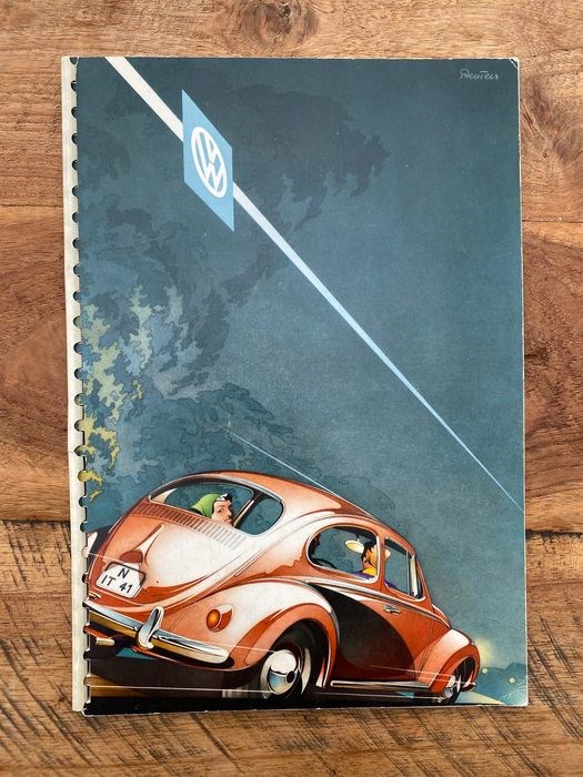 Oude originele Duitstalige Volkswagen verkoopbrochure van eind jaren ‘50 met prijslijstje uit 1957 met prachtige tekeningen en illustraties van de bekende Reuters.