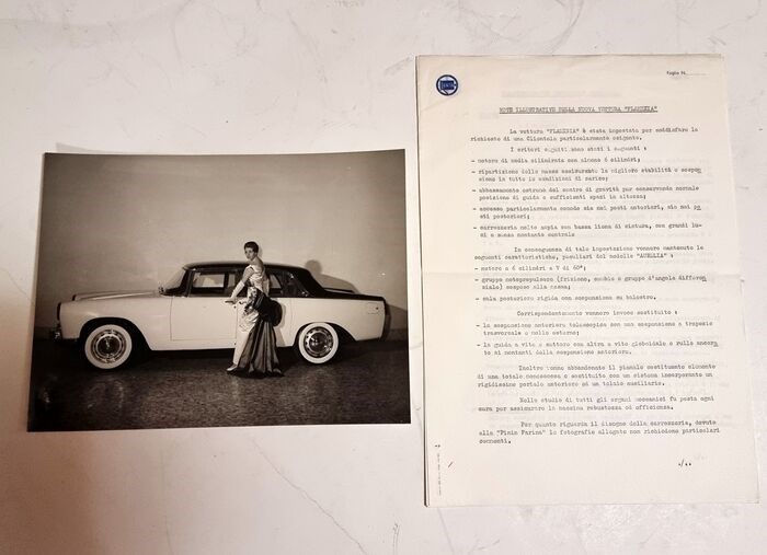 Informatiebladen en officiële foto, materiaal gegeven aan de gespecialiseerde pers ter gelegenheid van de presentatie van de nieuwe Lancia Flaminia sedan in 1957.