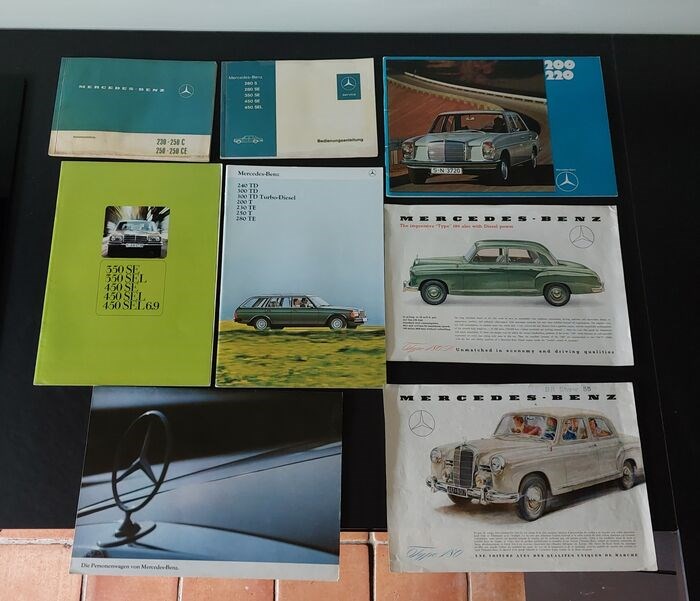 Lot van 6 catalogi en twee Mercedes boordboekjes.