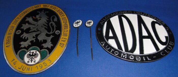 ADAC Heidelberger Automobile Club Badge uit 1953 & Algemeiner Duitse Automobile Club Badge & 2 Speldjes