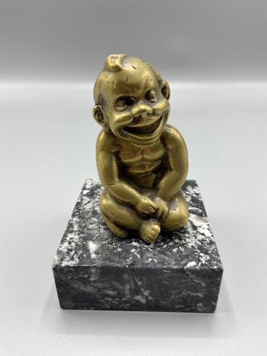 Bronze radiator mascotte billiken 1920-1930 Frankrijk hij is van massief brons hij is 8,5 cm hoog zonder het marmeren voetje in totaal is hij 11,5 cm hoog
