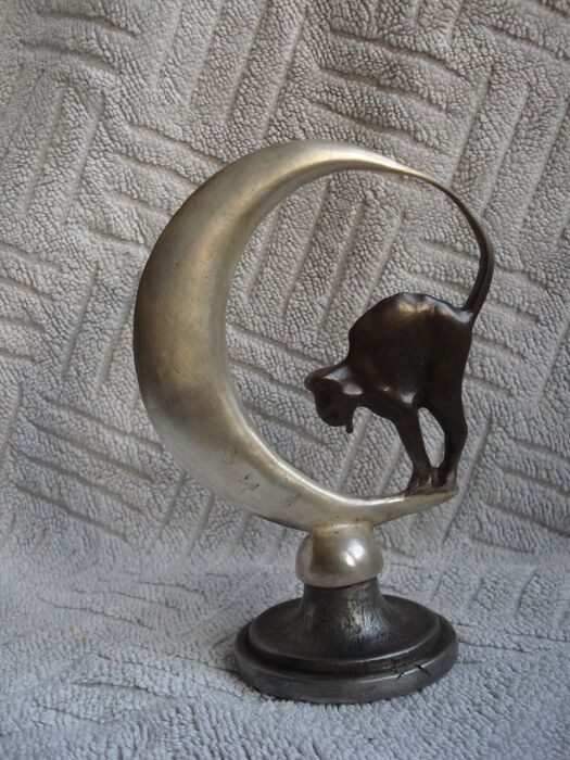 Automascotte "kat in de maan" op voet.