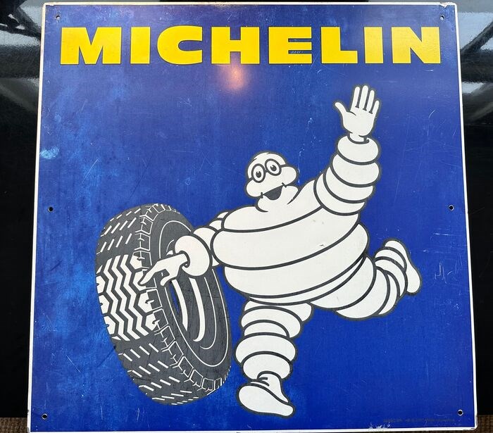 Groot uit Frankrijk afkomstig emaille reclame bord van MICHELIN banden. Bord is in een nog zeer goede staat en vrijwel onbeschadigd. Afmetingen 80 x 80 cm.
