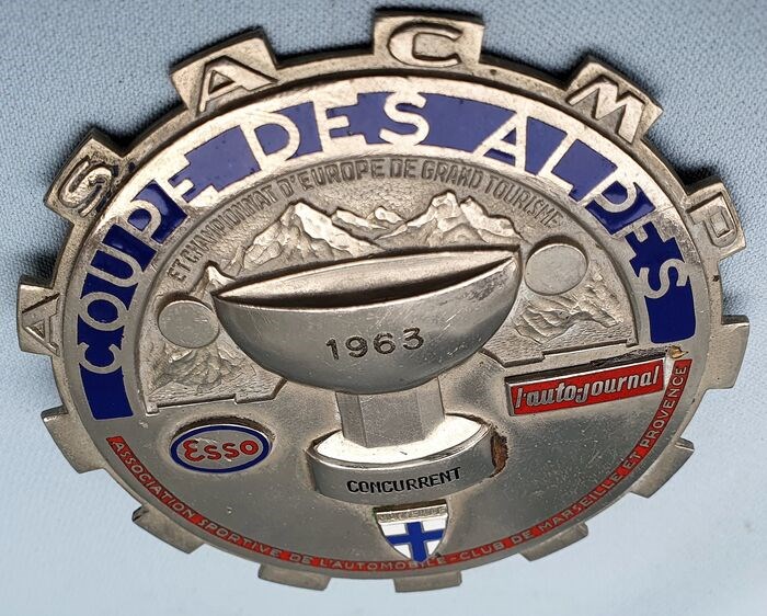 Geëmailleerde Grille Badge ASACMP, 19e Rally Coupe des Alpes Marseille - Chamonix - Milan - Marseille.
