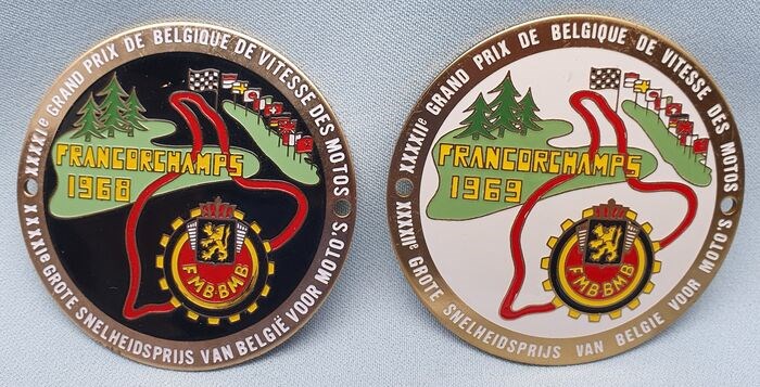 Twee Grille Badges van deSpa Francorchamps Grand Prix Circuit. Nooit gemonteerd geweest, z.g.a.n.