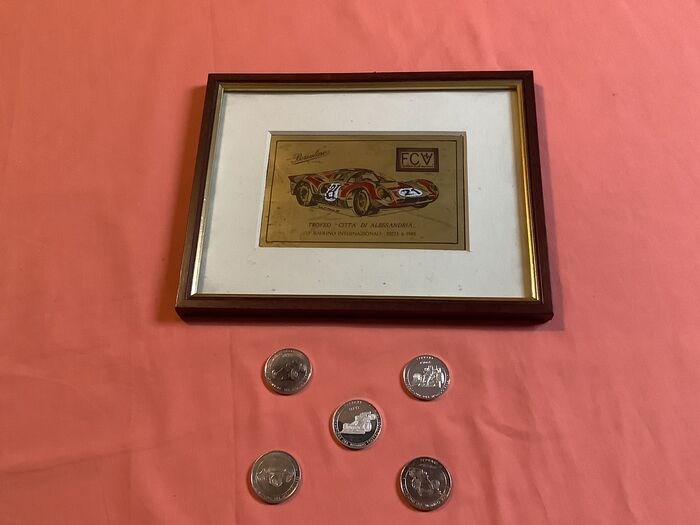 Officiële clubplaat van Ferrari, internationale bijeenkomst, handgemaakt op 22 kt goudfolie en vervolgens geëmailleerd, zeer beperkte oplage alleen voor deelnemers aan evenementen, item dat moeilijk te vinden is, verrijkt met het merk Borsalino, historische wereldleider in hoedenproductie. Ferrari 1956, 1958, 1976, 2000, 2004 wereld officiële herdenkingsmedailles, zeer beperkte oplage, moeilijk te vinden. Veilige verzending per koerier