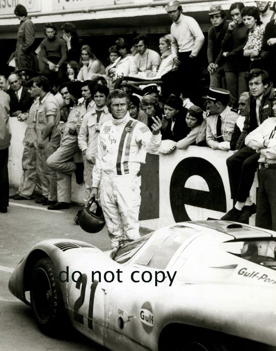 1971 Le Mans 24 uur Steve Mc Queen Porsche zwart-wit afbeelding, geweldige afbeelding in nieuwstaat. Van een Nigel snowdon-afbeelding Ongeveer 54 cm x 44 cm. Chris Bayley copyrignt-stempel op de achterkant.