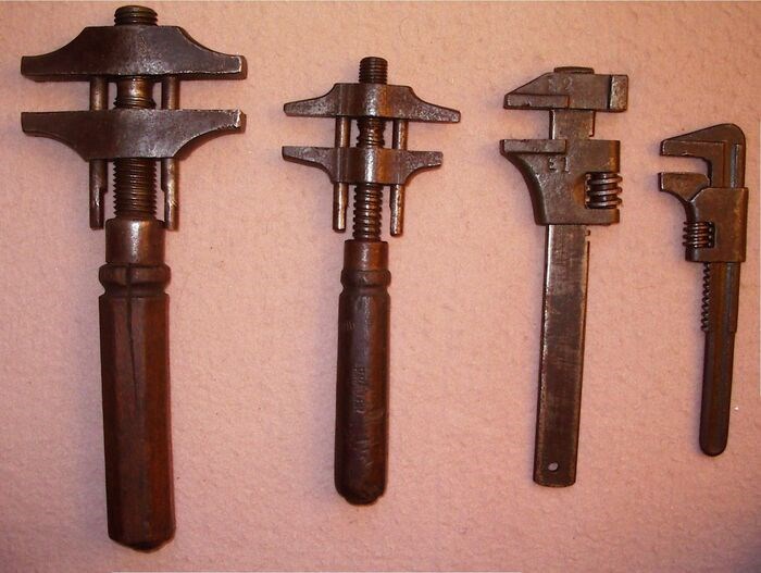 ¶ De eerste verstelbare sleutels werden ontwikkeld door Edwin Beard Budding (1795-1846), later verbeterd door Johan Petter Johansson in 1892. Hij sloot een overeenkomst met de firma B.A. Hjort & Company (Bahco).