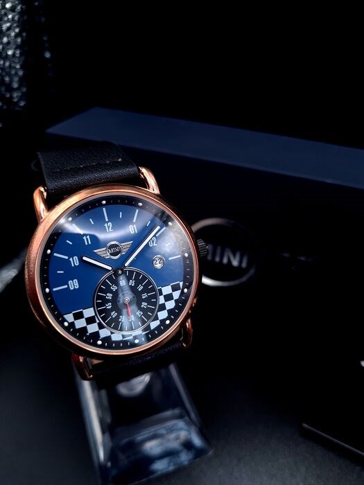 De wijzerplaat van het horloge heeft de datumweergave op de 3 uurs positie.