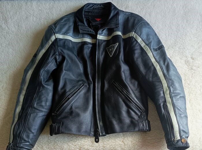 Leren jack, grijs en zwart van het merk Dainese.