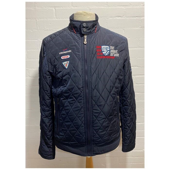 Dit jack is voorzien van badges/borduursel met op de: the drive to win, nine eight seven championship, racing state of art, op de rechtsborst wat sponsoren: Vredestein, Sonax, Koni, #87.