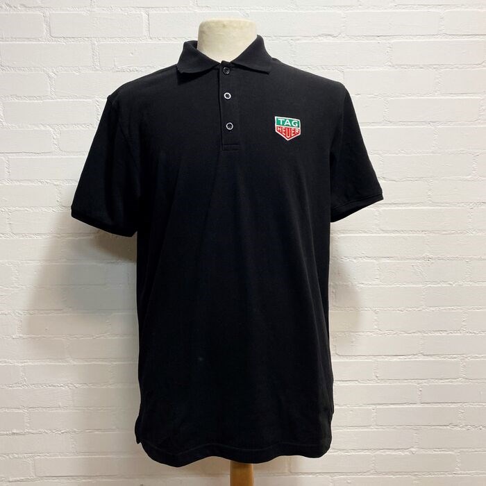 Zwart t-shirt / polo voor horloge, en autosport, merk Tag Heuer.