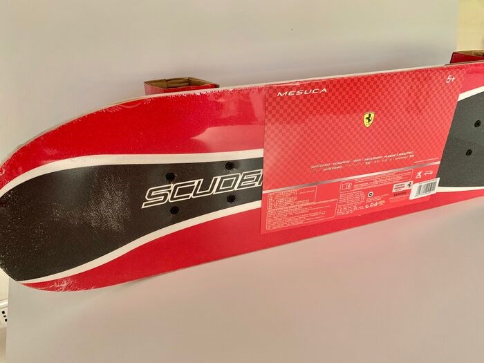 Er wordt geveild een prachtig skateboard gemaakt door Ferrari in samenwerking met Mesuca.