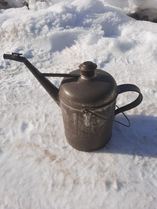 Oude oliekan olieburet PETROLEUM