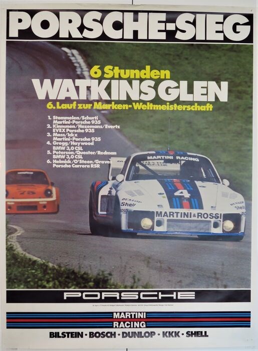 Twee originele vintage autosportposters van Porsche 935 en 936 van de overwinningen in 1976.