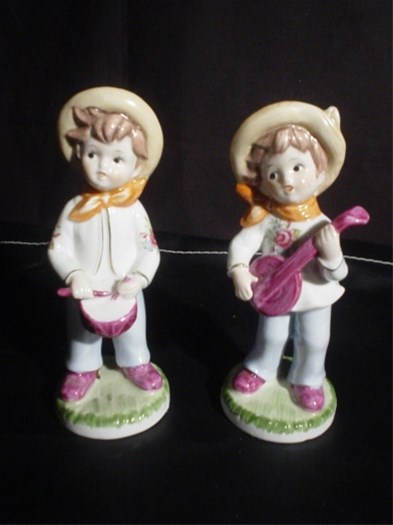 2 porceleinen beeldjes van kindermuzikanten.