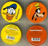 -Daisy Duck, Donald Duck, Goofy (2 verschillende), Mickey Mouse, Minnie Mouse en Pluto (de hond) op Disneyland Paris lege snoepdoosjes in blik (respectievelijk met een diameter van 4,00 cm en een hoogte van 1,50 cm.).