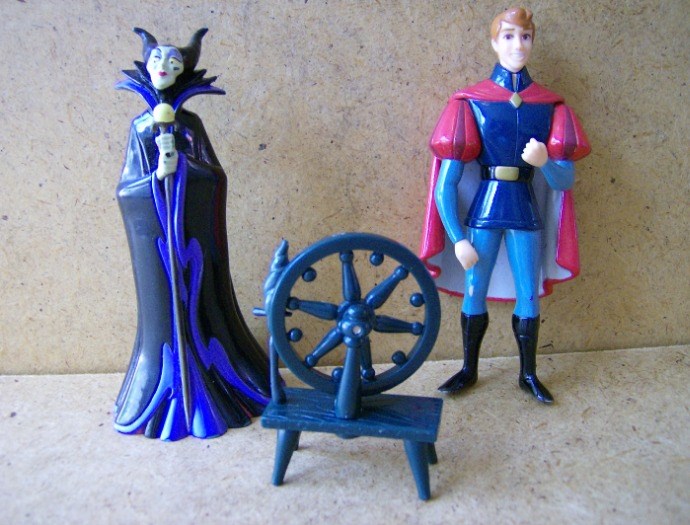 nu aangebodendoornroosje poppetjes- maleficent , prins philip en spinnewielpoppetjes 10cmspinnewiel 5½cm1 koopbel of mailkijk ook eens bij al mijn advertenties
