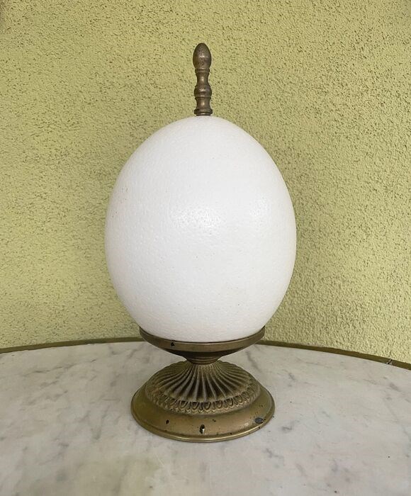 Een prachtige grote struisvogel gemonteerd op een antiek bronzen voetstuk met antiek bronzen blad. Mooie aanwinst voor je interieur!