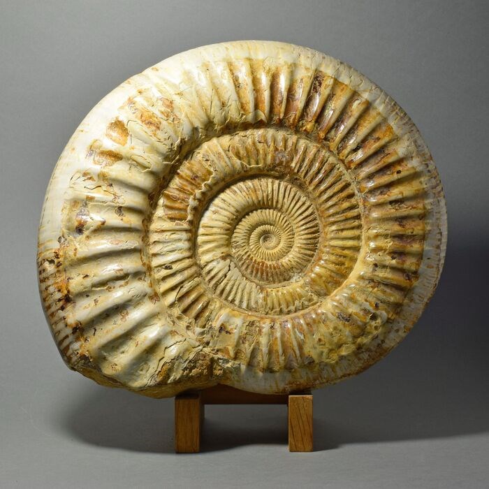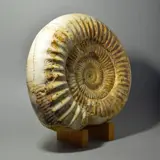 Een ammoniet Prososphinctes met prachtige parelmoer schelp Zeer decoratief exemplaar. De binnenste kransen zijn samengesteld.