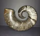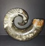 Mooie en grote heteromorfe ammoniet, museumkwaliteit. Devoon periode, herkomst Marokko. Gepolijst. Afmetingen: 18×14×7,5 cm. Gewicht: 2950 g.