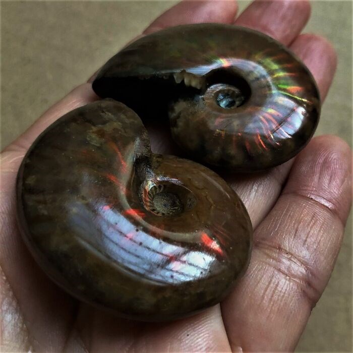 Extraordinary opalized Ammonites, of the Cleoniceras species.