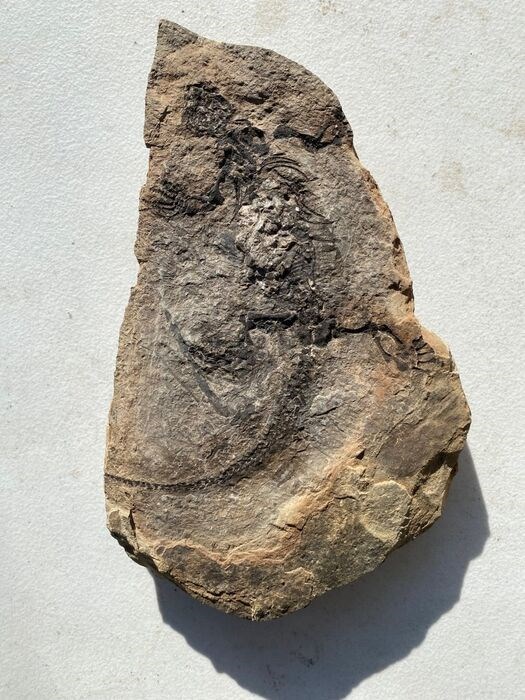 Deze Barasaurus leefde ongeveer 250 miljoen jaar geleden. Het is bijna perfect bewaard gebleven van kop tot staartpunt.