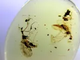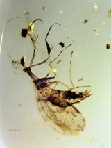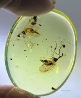 Deze barnsteen uit het Krijt bevat twee zeer zeldzame Mantispidae. Deze Mantispidae lijkt erg op de bidsprinkhaan. Maar het is een heel andere soort dan de bidsprinkhaan. Het is vrij zeldzaam om dit soort insect in Birmese barnsteen te vinden, en het is zelfs nog zeldzamer om twee Mantispidae in één barnsteen te hebben.