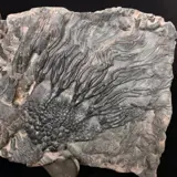 Zeer goed voorbeeld van Scyphocrinites elegans bord met een uitzonderlijke conservering en geweldige details. Het fossiel is absoluut natuurlijk met wat kleurstof om de crinoïden te versterken. Houd er rekening mee dat de plaat aan de achterkant is gelijmd om stabiliteit te geven aan een scheur die de fossiele structuren van het blootgestelde deel niet aantast. Een gewild fossiel uit het Siluur van Erfoud, Marokko