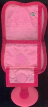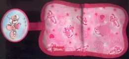 Het geheel is in zachtroze nylon en is afgeboord met hardroze boordlint.